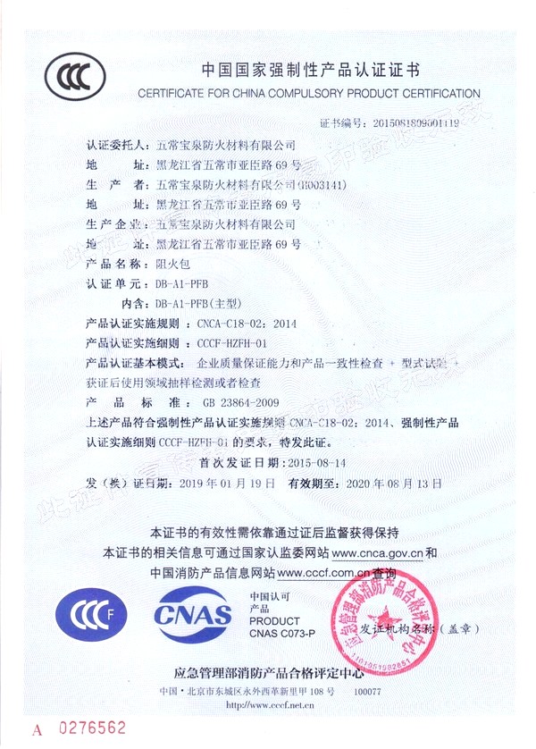 企業簡介 五常寶泉防火材料有限公司(黑龍江省寶泉消防設備有限公司)是主要制造、經營、銷售防火阻燃材料系列產品。其中以自粘性阻燃包帶(ZFBD)、阻火包(PFB)、有機防火堵料(SFD)、室內超薄型鋼結構防火涂料(NCB(BCF)-1)為主要產品。寶泉牌防火材料系列產品是普通防火材料的更新換代產品,防火性能優異,具有普通防火材料沒有的諸多優點:施工方便、經久耐用、耐火極限高、熱傳導率低、耐腐蝕、抗老化、無毒無害、環保、可以連續施工等特點。產品廣泛應用于電力企業(各型電廠、輸變電公司、電建公司、電力公司)、石油化工企業、冶金業、通訊業、地鐵、隧道、...